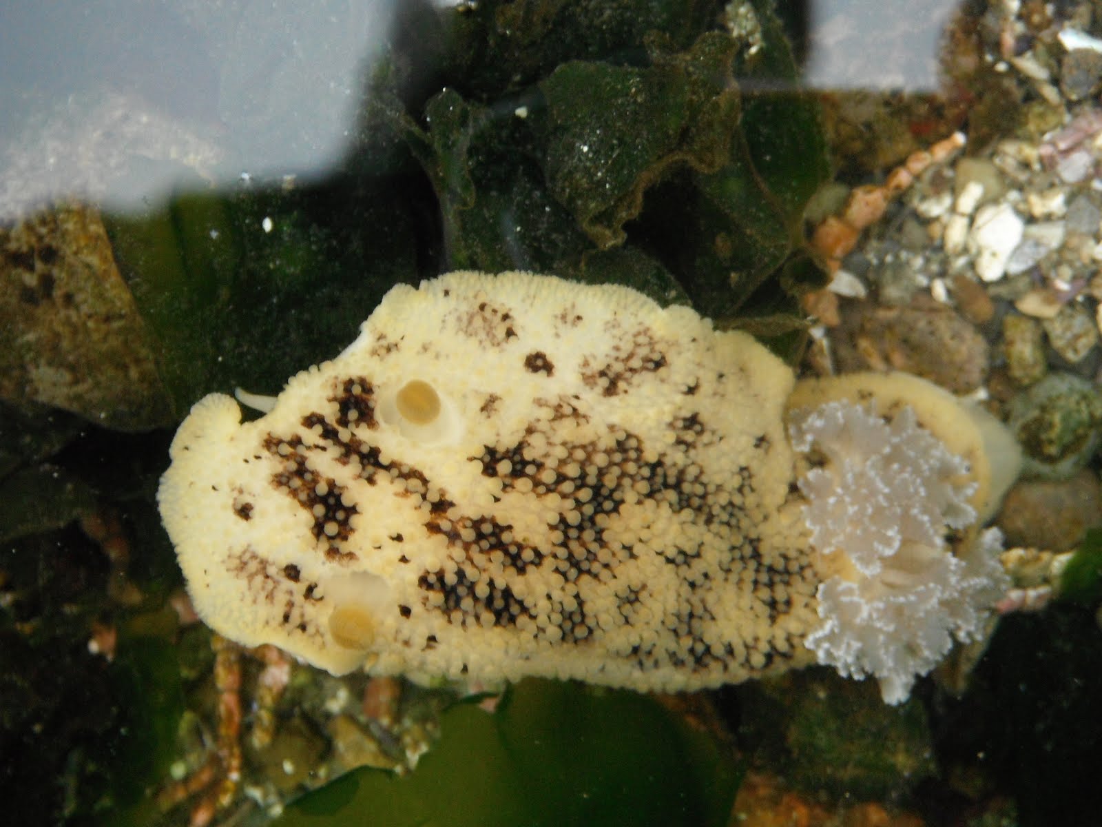 This is a sea lemon that Tide Pool Mary found. I love the two lacy gills. Very neat find in a tide pool.